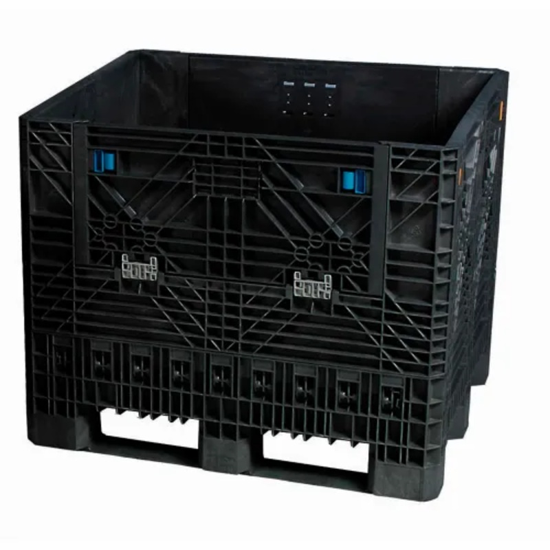 Folds easily to save on return shipping. 100% polyethylene material resists rust, odors, and moisture. Structurally reinforced at all stress points for added strength and stability. Smooth inside surface cleans easily. Positive interlocking corners provide secure set-up and quick folding. Convenient four-way forklift access. 3:1 stacking ratio for savings on return shipping. Folds to 12-9/16″ high.