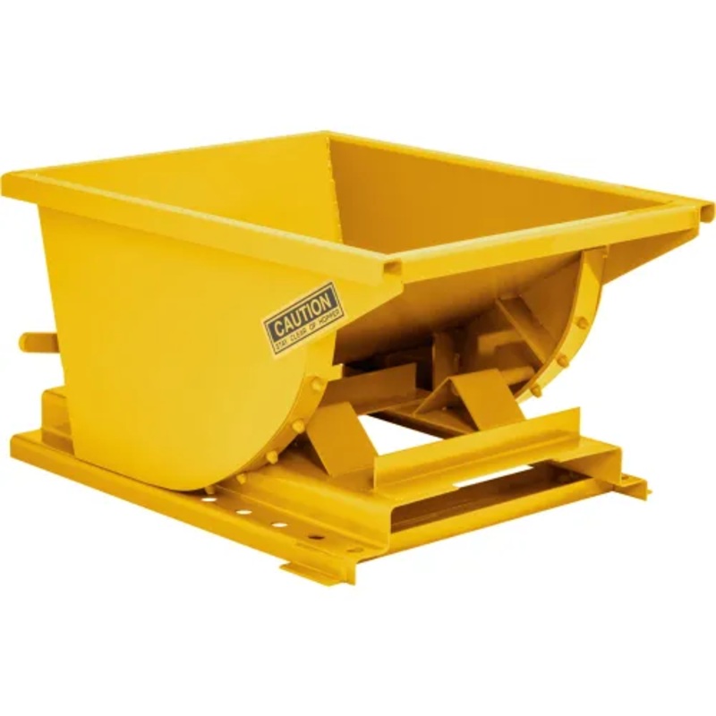 Global Industrial SELF-DUMPING STEEL FORKLIFT HOPPER Engineered for safety and economy. Hoppers are perfectly balanced to roll forward when loaded, dump completely and automatically return to upright, locked position ready for reloading. Continuous welding