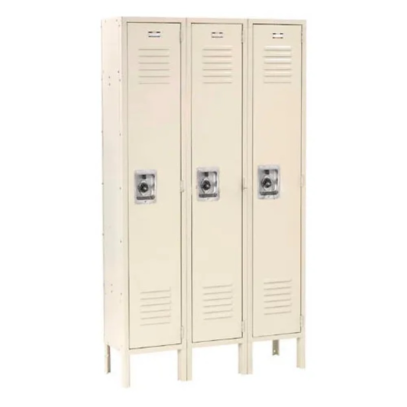 Global Industrial Infinity 1-Tier 3 Door Locker, 36″W x 12″D x 78″H, Tan, Unassembled