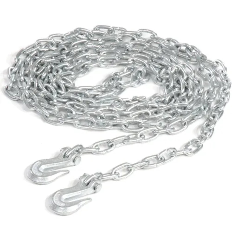 Chain is 1/4″ thick with a hook on both ends. 1,250 lbs. capacity.