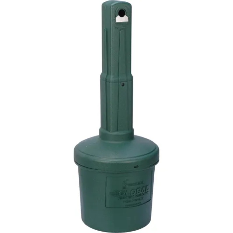 ✓ Restricted opening keeps out non-cigarette waste.✓ Special housing keeps out rain and airflow to extinguish butts and fight odor.✓ Offers 5-gallon capacity.The Global Industrial Outdoor Ashtray helps reduce fire-risk and kee