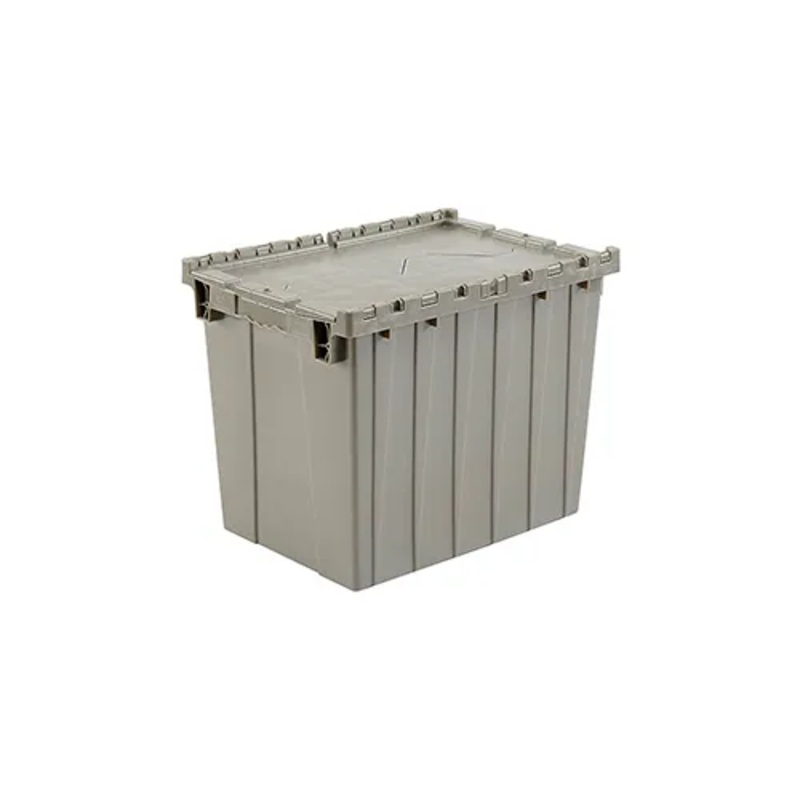 Plastic Storage Container - Attached Lid DC2115-17 21-7/8 x 15-1/4 x 17-1/4 GraySafe, Secure, and Sustainable. The improved all plastic attached lid container leads the industry in design and proven performance. Taken out was the traditional metal hinge re