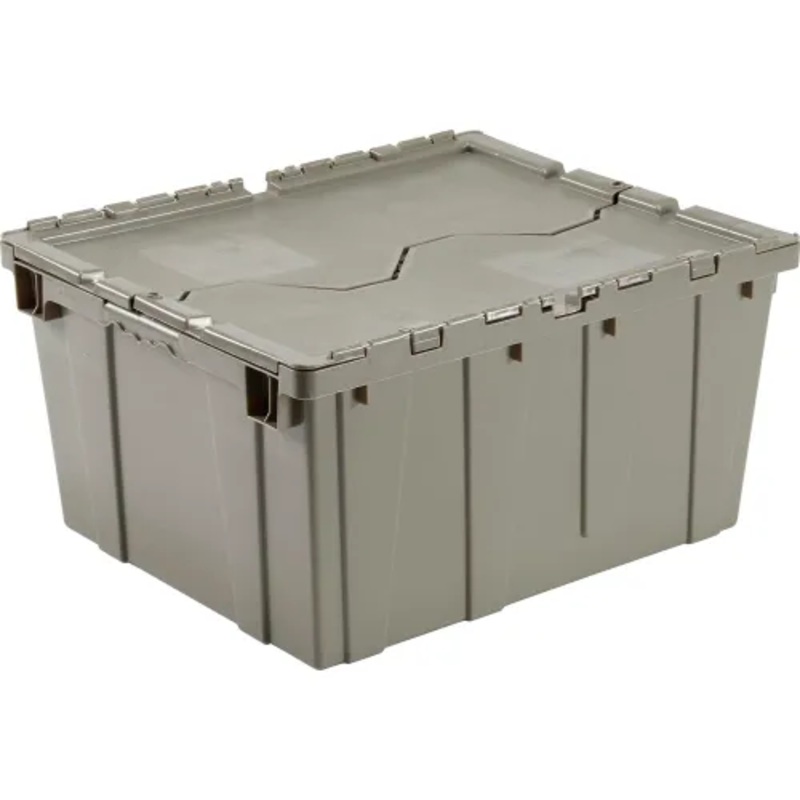 Global Industrial Plastic Attached Lid Shipping & Storage Tote, 23-3/4″x19-1/4″x12-1/2″, Gray