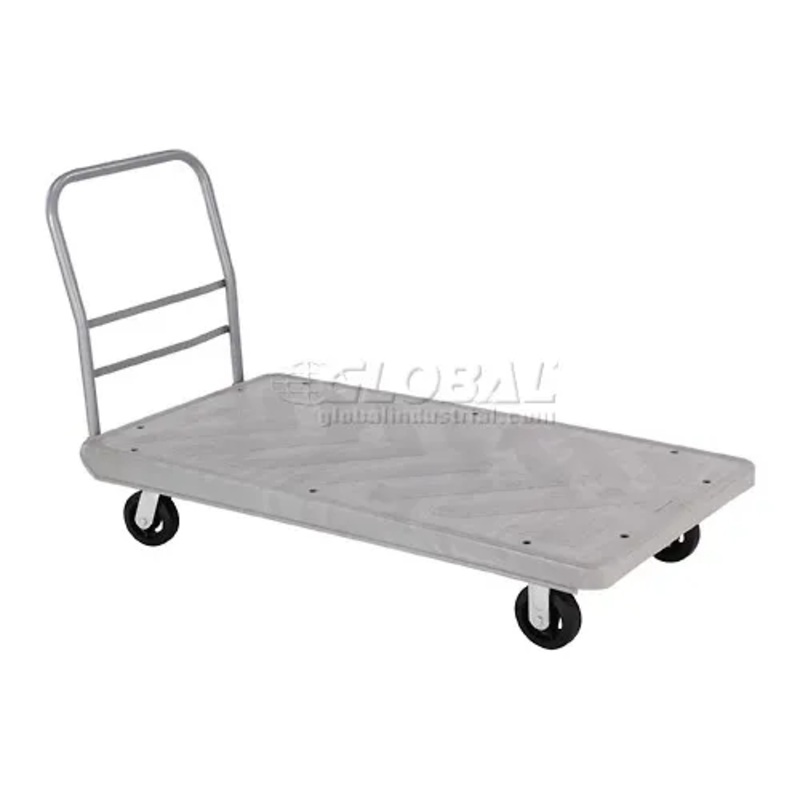 Reinforced structural foam plastic deck is strong, lightweight and quieter rolling than steel deck trucks. Easy to clean, resists most chemicals and will not chip, dent, rust or mar walls. Anti-skid deck surface and twin braced, removable steel push handle