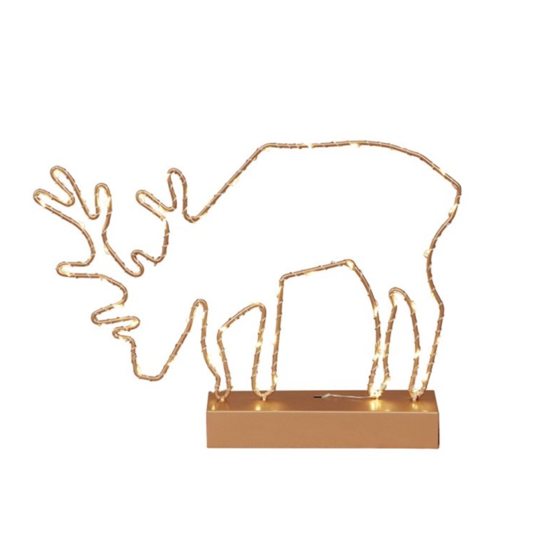 LE1801 LED Decoration Grazing Deer (Gold)24x6x30cmFor indoor use only, not for use in wet or damp locations.Battery installation: To open, pull down (follow the arrow) white cover for battery, insert 2AA batteries. Pull up to close and lock (opposite way o