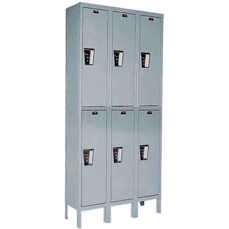 These lockers offer 1 double prong hook and 3-single wall hooks. All units offer stainless steel recessed handles encasing optional padlocks to prevent scratching. No moving parts in the latching mechanism, along with rubber bumpers, makes for silent operation.