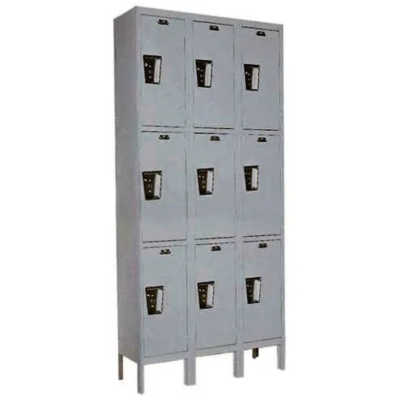 Hallowell UY3228-3 Maintenance-Free Quiet Locker Triple Tier 12x12x24 9 Door Ready To Assemble GrayThese lockers are ideal for added storage of personal items where space is limited. All units offer stainless steel recessed handles encasing optional padloc