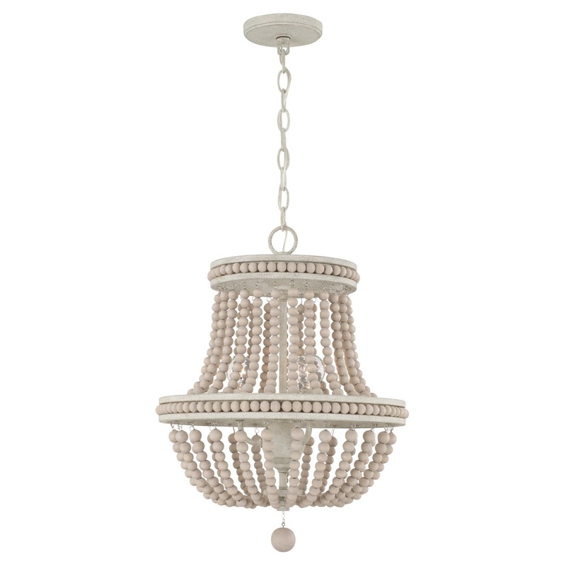 Bring bohemian charm to any space with the hand-painted wood beads of the Handley 3-Light Chandelier. The light, neutral tones of the Sand Dollar finish complement a variety of styles, while the sand-like texture creates dimension.Width: 15.75"Height: 19.7