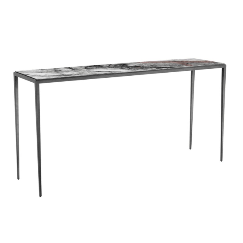 Adj idtlen stlust nappalidhoz a Henley mrvny konzolasztal segtsgvel. Ez az alkalmi asztal bronz bevonat vzzal rendelkezik s gynyr mrvny asztallappal, amely finom szrke, fekete s piros tnusokkal van dsztve. A Henley mrvny konzolasztal bronz lbbal klasszikus