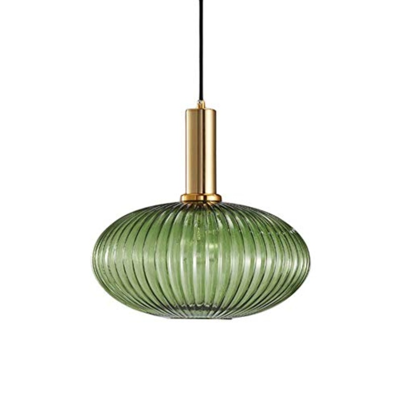 Marca: HJXDtechColore: VerdeCaratteristiche: Lampada a sospensione nordica moderna ed elegante in vetro traslucido a righe con portalampada di alta qualit in rame spazzolatoIl diametro del paralume di 30 cm, l'altezza del portalampada in ottone 18 cm e la