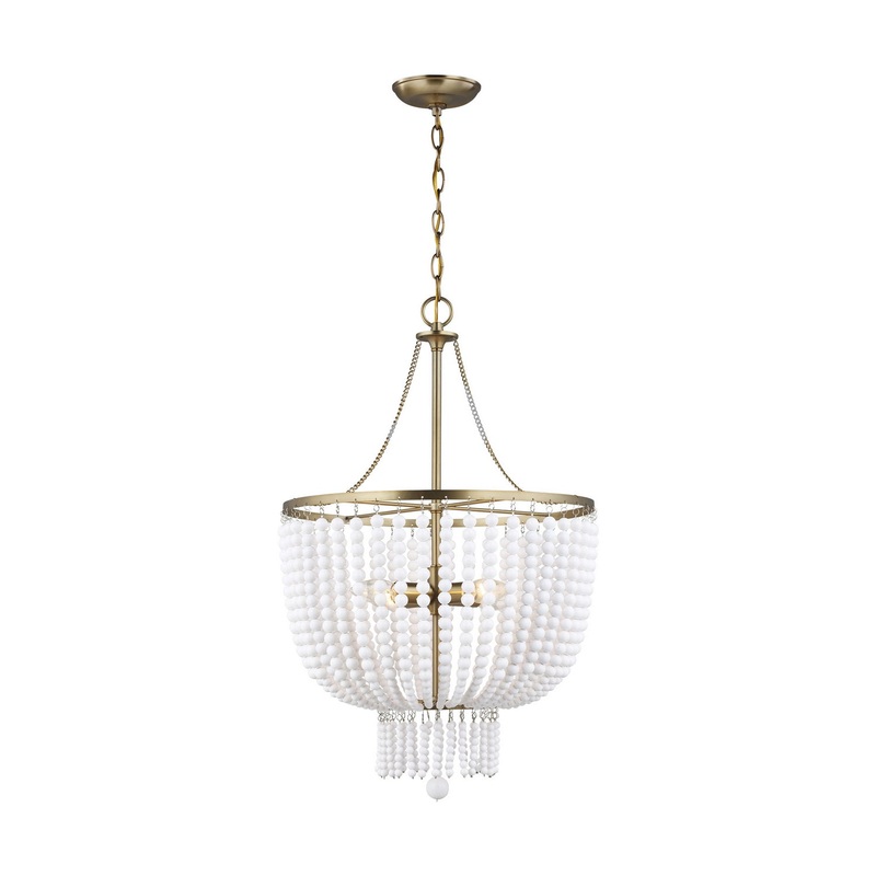 The Jackie four light pendant by Visual Comfort Studio is offered in the Satin Brass or Brushed Nickel finish and is a charming delight in any room. The vintage elements meet modern colors and finishes for a timeless piece. Dress up your space in decadence