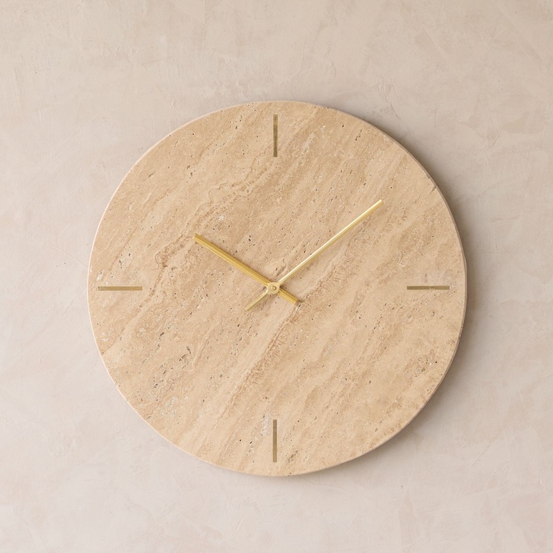 Brand:Nomad HomeThe Jenay Clock pairs minimalist design with the raw beauty of natural stone. Crafted from travertine, each piece features subtle variations in tone and texture, making every clock unique. A refined way to keep time, it adds quiet sophistic