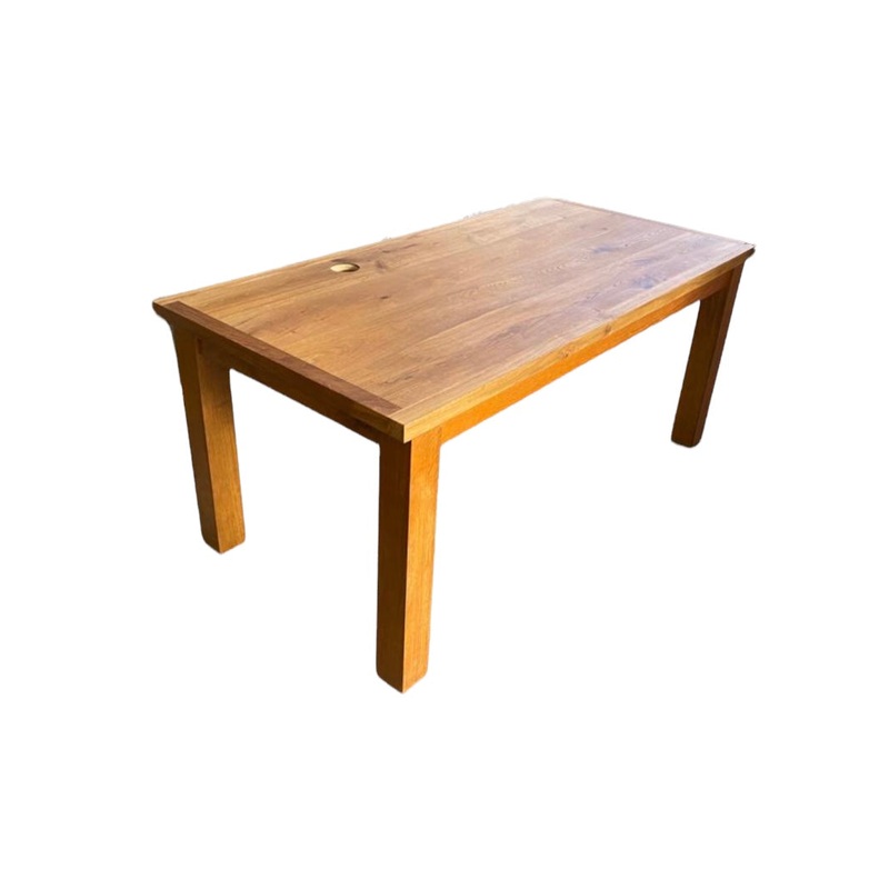 1700mm long x 850mm wide x 750mm high. The image is of a desk, the table does not have a hole for cables.