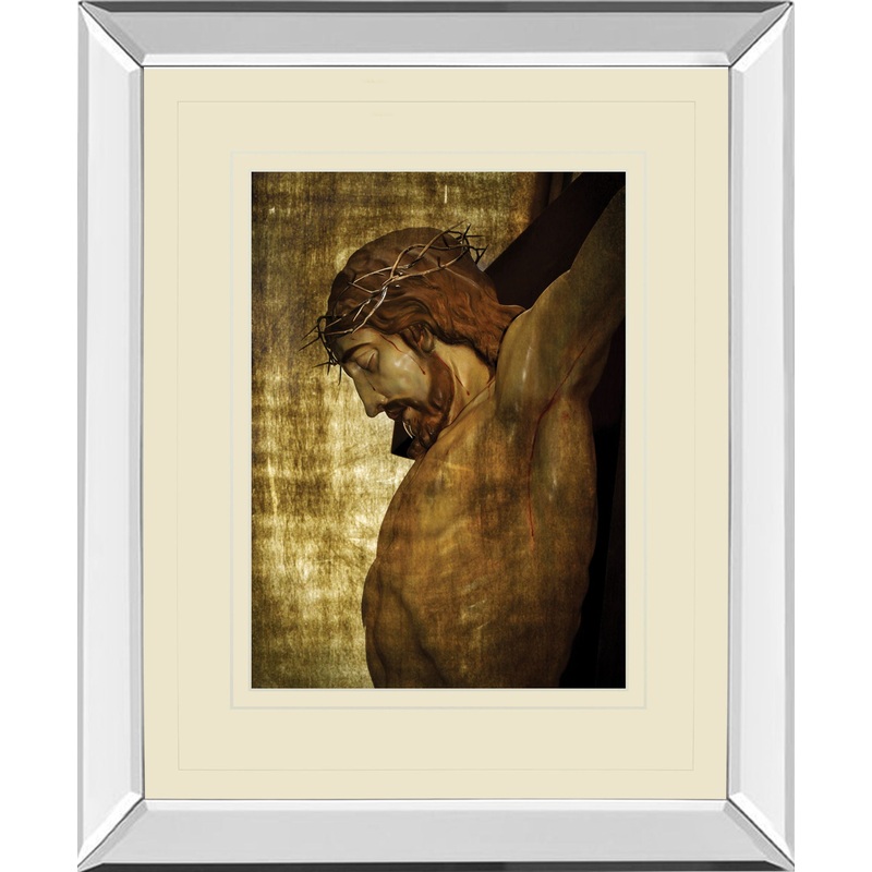 A spiritual image of Jesus on the cross.Product FeaturesA spiritual image of Jesus on the cross.Wide 2 inch mirrored frameDouble MattedReal glassReady to hangFramed In a beautiful Mirrored FramePeopleJesusVerticalNitoWipe clean with damp clothJesus Christ