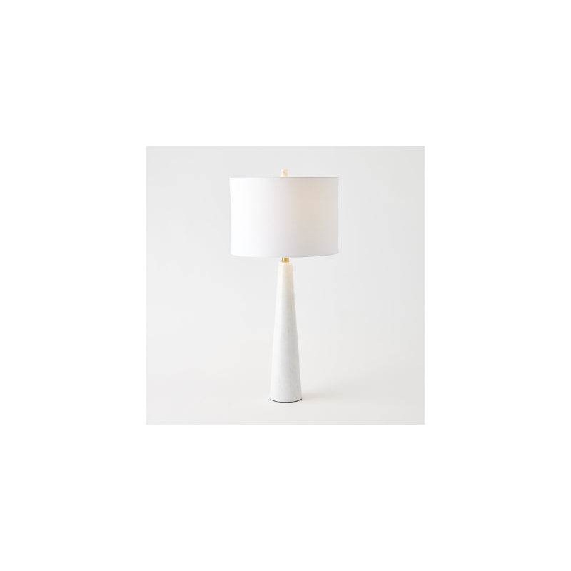 The Kalamazoo Marble Lamp offers a refined, modern aesthetic with its handcrafted design, made from a solid piece of white marble. Its elegant brass accents enhance the sleek structure, while the linen hardback shade provides a warm, inviting light, perfec