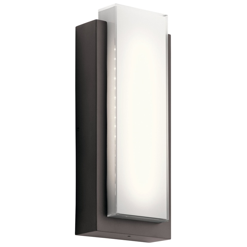 The Dahlia 18.75" LED outdoor wall light with white glass Architectural Bronze finish. The Dahlia features a sophisticated, crisp edge detail giving a contemporary look.Details:Product Type: Wall Mt./FlushFinish: Architectural BronzeShade: Clear With Paint