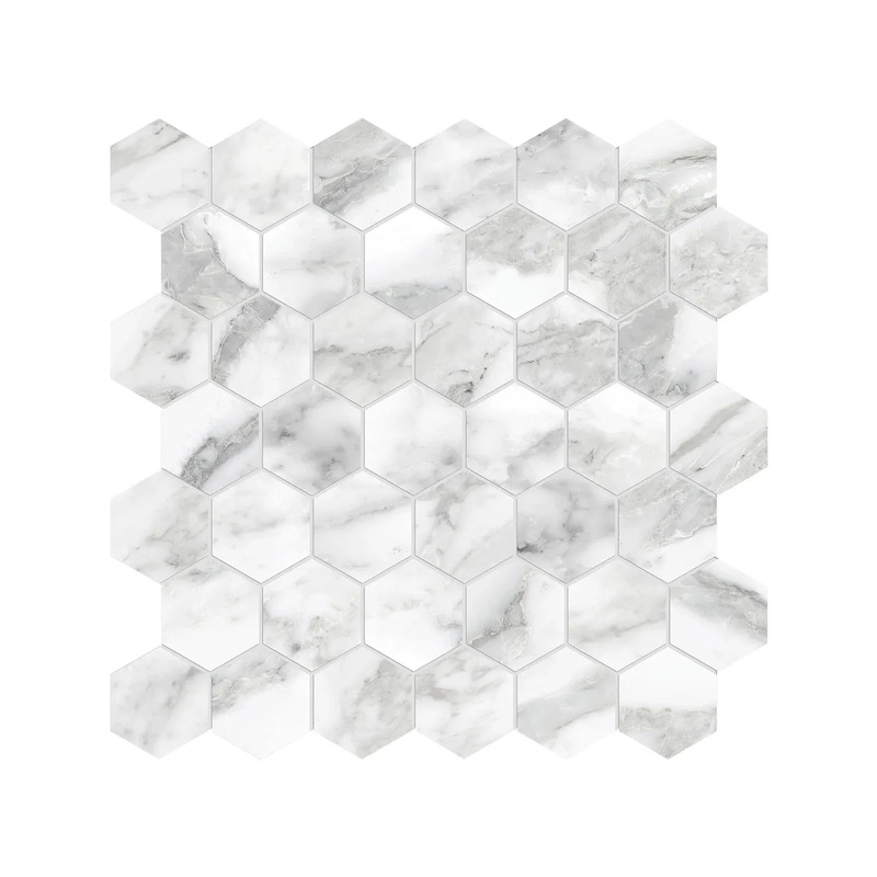 Discover Anatolia Tile La Marca 2 Inch Hexagon Arabescato Honed Porcelain Mosaics. 1 Sheet = .96 Sq. Ft. 4501-0349-0 Arabescato 2″ Hexagon Honed at PoshHaus in Keene, NH. Shop premium natural stone mosaic tiles locally in New Hampshire. Order online or visit our showroom today!