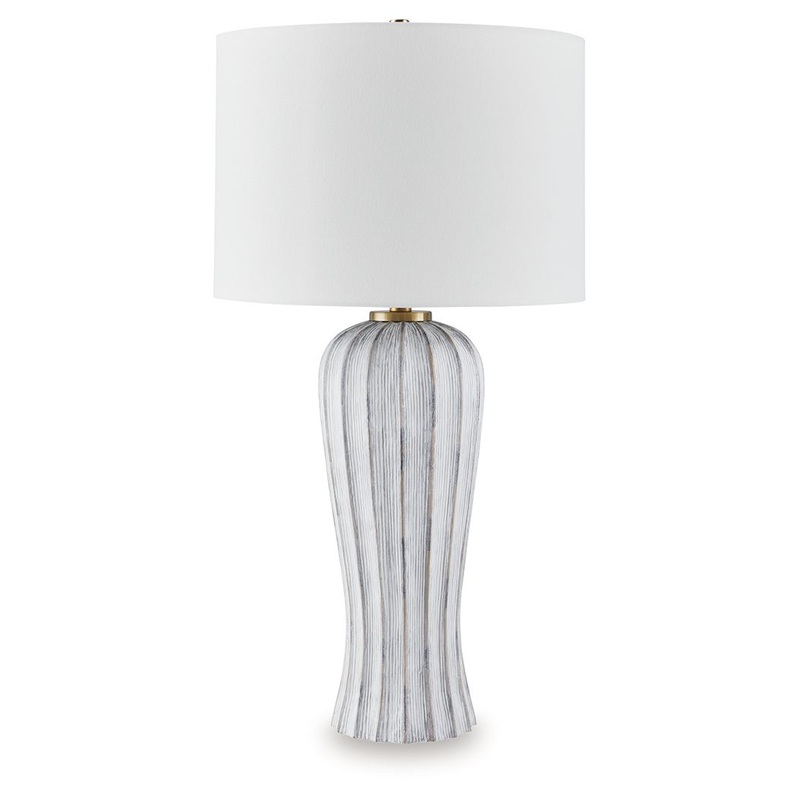 Classic sophistication meets modern sensibility. The gracefully fluted base of this table lamp brings a dynamic feel to the white shade’s crisp look. Finished in a versatile antiqued gray, the transitional piece effortlessly bridges casual and contemporary design.