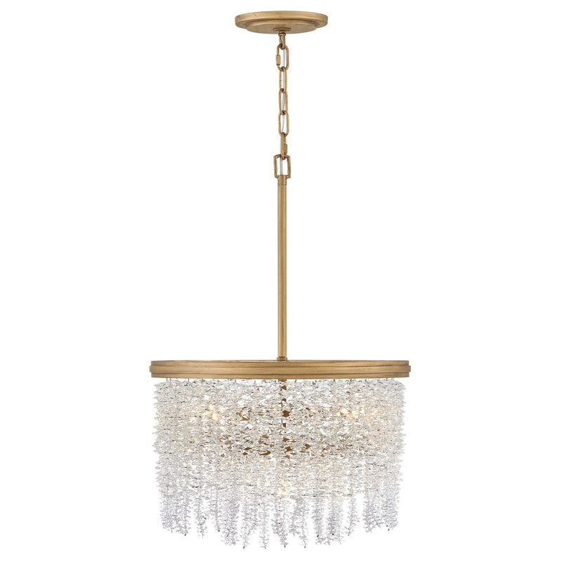 Dripping with glamour, Rubina’s magnificent shade is crafted from individually hung strands of sparkling crystal. A traditional tiered frame accentuates every beautiful refraction with its Burnished Gold finish.