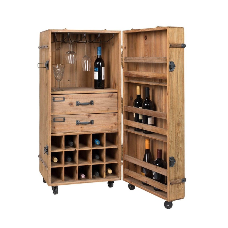 Anyaga: tmr fenyfa antik kivitelben vas zsanrok s reteszek, grgkkel 2 fikkal Rekesz 15 borosveghez Maximlis terhelhetsg: 40 kg