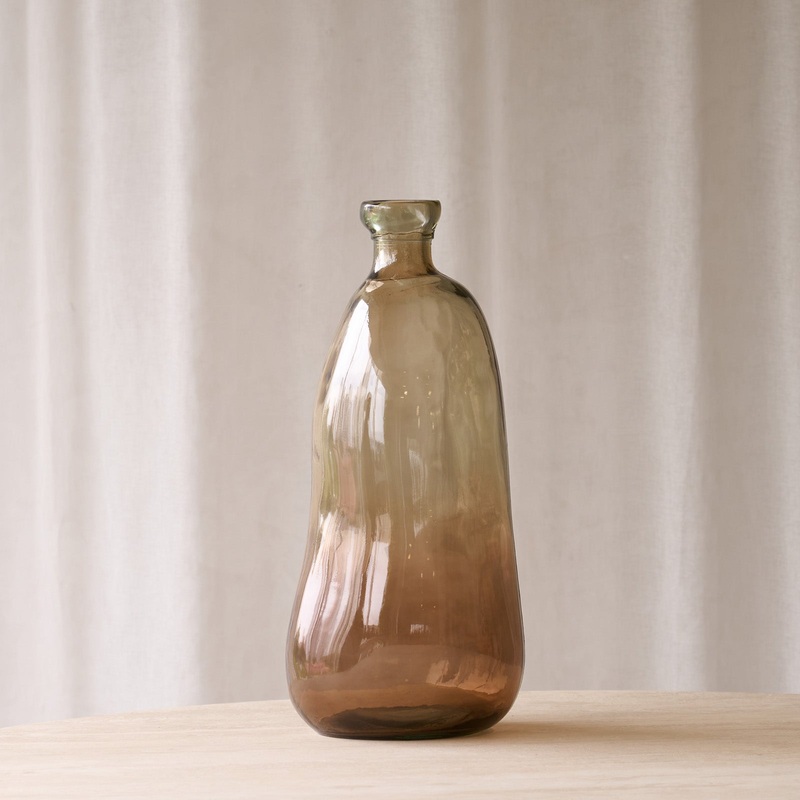 Brand: Nomad HomeThe Lido Vase, crafted from dark brown-sand glass, features a natural design that exudes earthy elegance. Its smooth, organic shape and rich tones make it a perfect accent piece, adding a touch of refined simplicity to any space.Dimensions