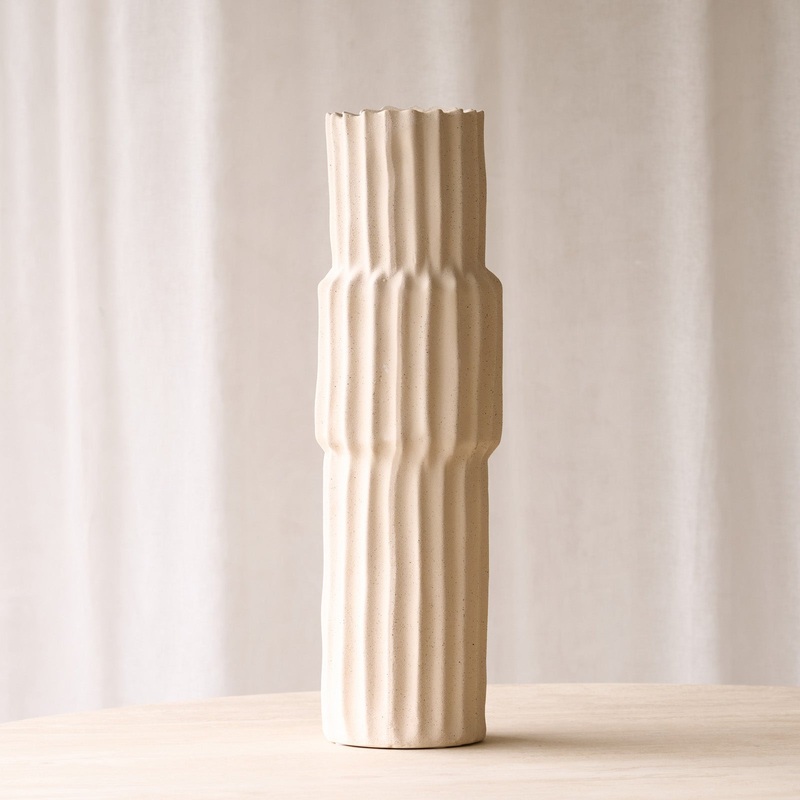 The Longa Vase is a striking piece that effortlessly combines modern design with timeless elegance. Its sleek, elongated form and refined finish make it a perfect centrepiece, adding a touch of sophistication and style to any decor.