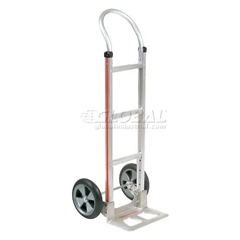 MAGLINER ALUMINUM HAND TRUCK Lightweight all-aluminum construction is durable and built for years of service. Choice of handles for personal comfort. Extruded aluminum channel uprights have riveted crossbars provide high strength. Polyethylene rail caps pr