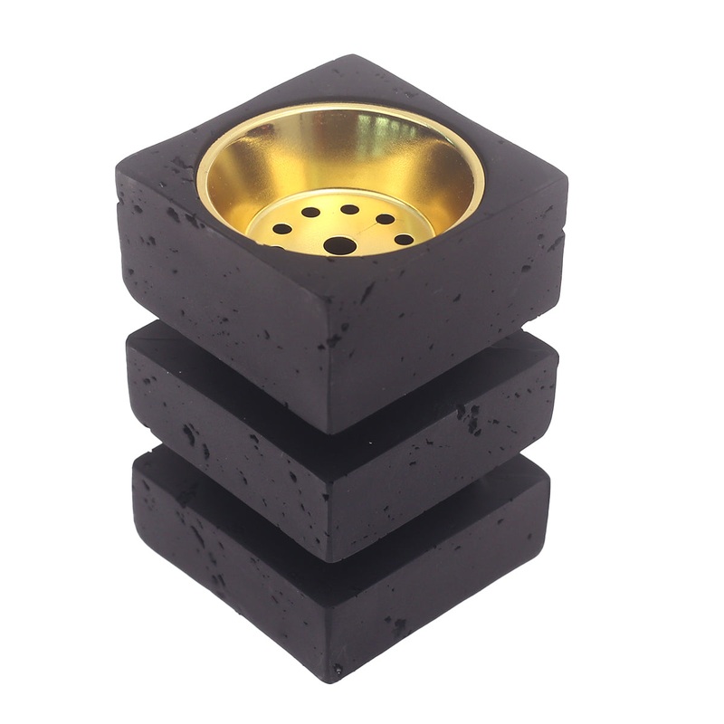 Bring a bold and modern edge to your space with this black stacked incense burner. The sleek, geometric design features three layered stone-textured blocks and a removable gold metal bowl, perfect for burning bakhoor or incense in style.