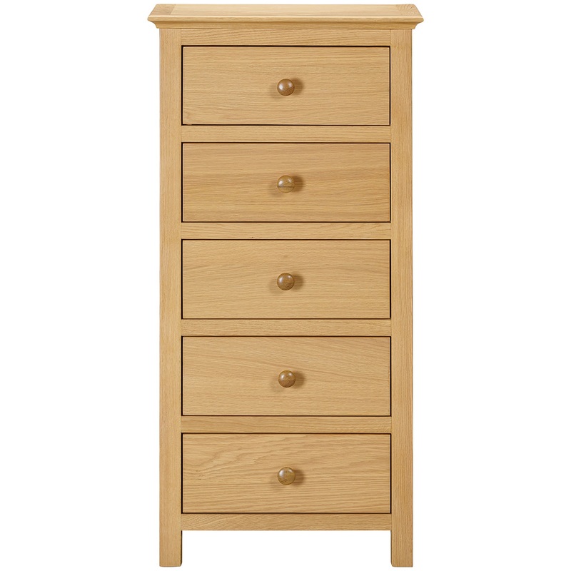 Perfect for a modern home, the Morecombe Oak range isa sleek design finished with a light lacquer with dovetailed drawers and moulded tops.