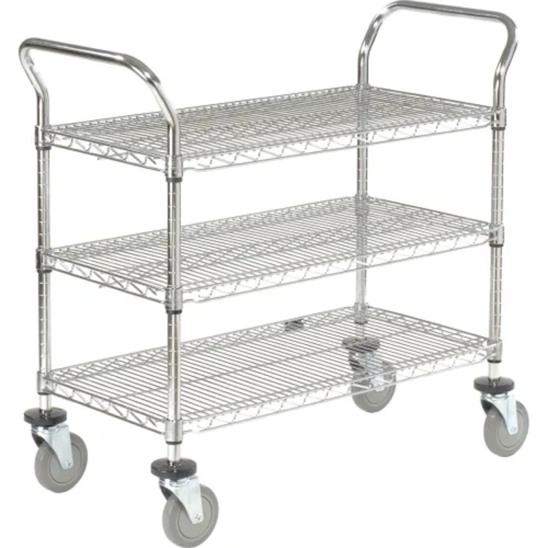 Nexel, 3 Shelf, Utility Cart, Chrome, 36″W x 18″D x 39″H, Poly Casters,4 Swivel