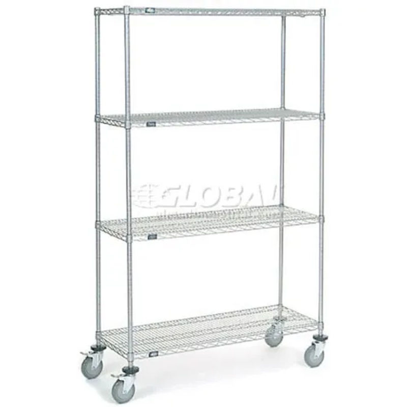 Nexel 4 Shelf Truck, Chrome, 48″W x 18″D x 80″H, Polyurethane Stem Casters, 4 Swivel