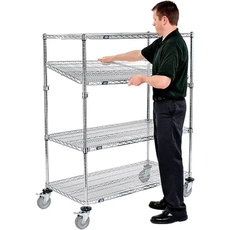 Nexel 4 Shelf Truck, Chrome, 48″W x 24″D x 69″H, Polyurethane Casters, 4 Swivel, 2 Brake