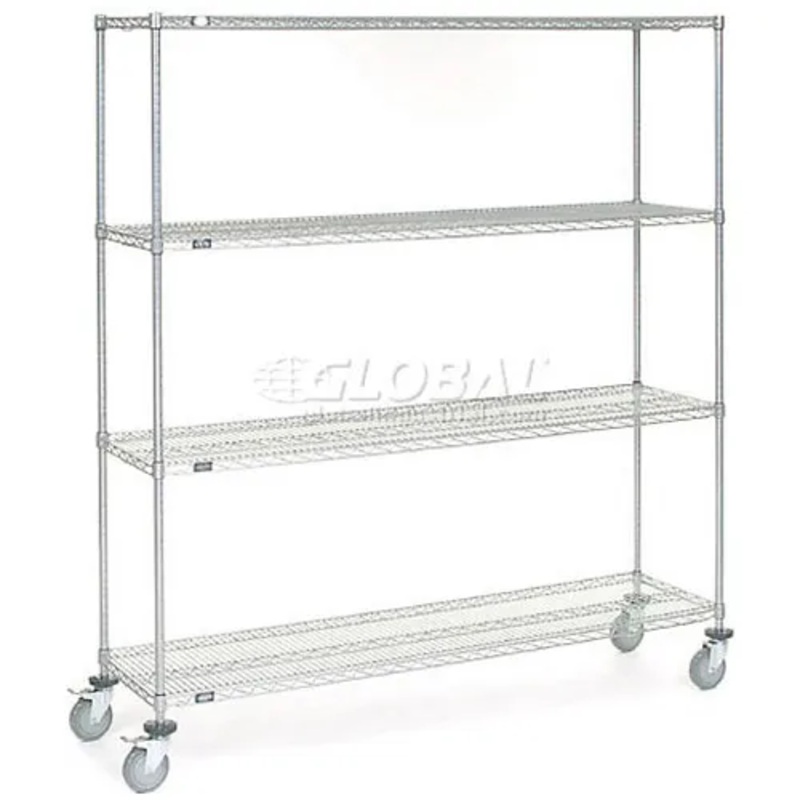 Nexel 4 Shelf Truck, Chrome, 72″W x 18″D x 80″H, Polyurethane Stem Casters, 4 Swivel