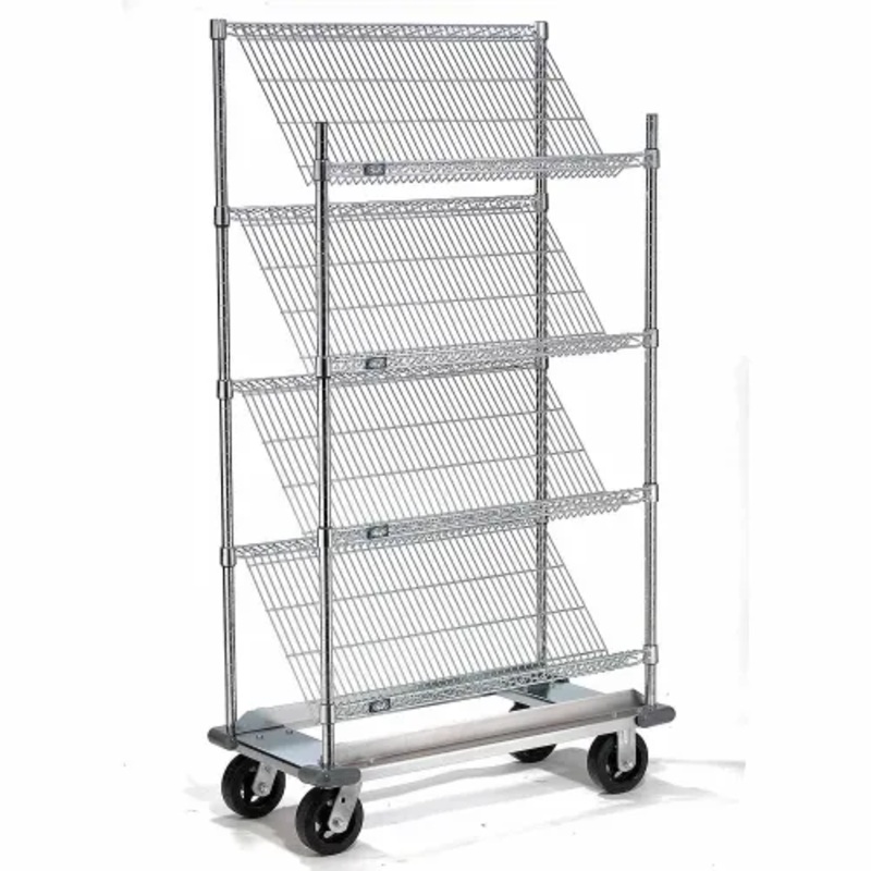 Nexel 4 Slant Shelf Truck, Chrome, 36″W x 18″D x 70″H, Rubber Plate Casters, 2 Rigid, 2 Swivel