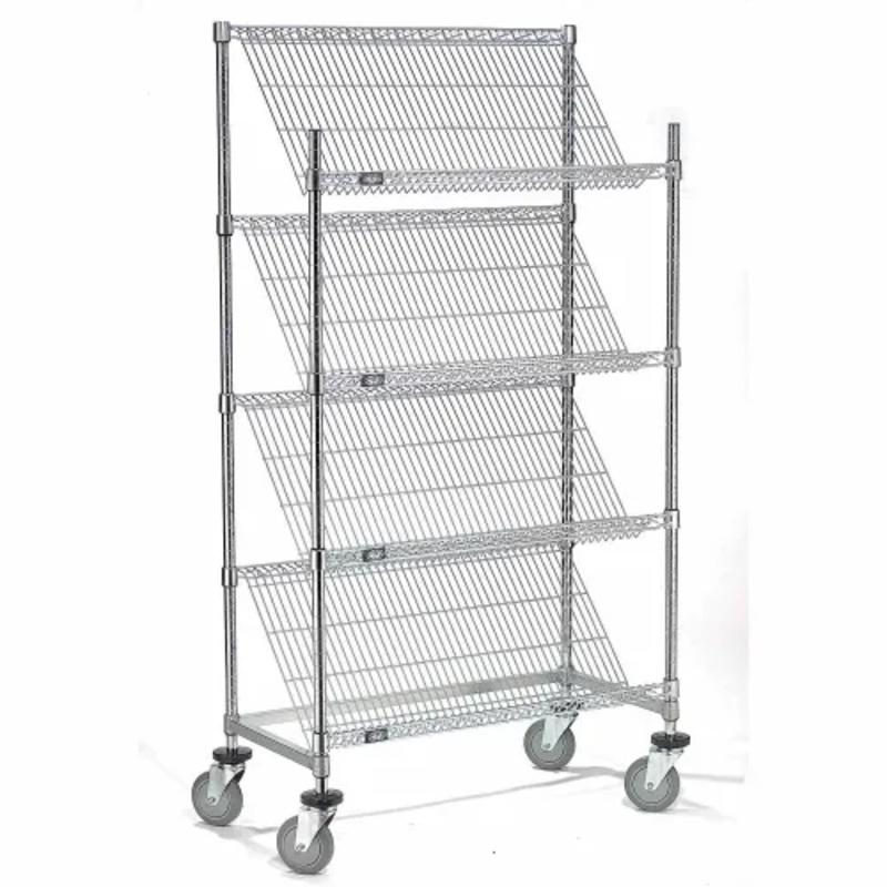 Nexel 4 Slant Shelf Truck, Chrome, 48″W x 18″D x 69″H, Polyurethane Stem Casters, 4 Swivel