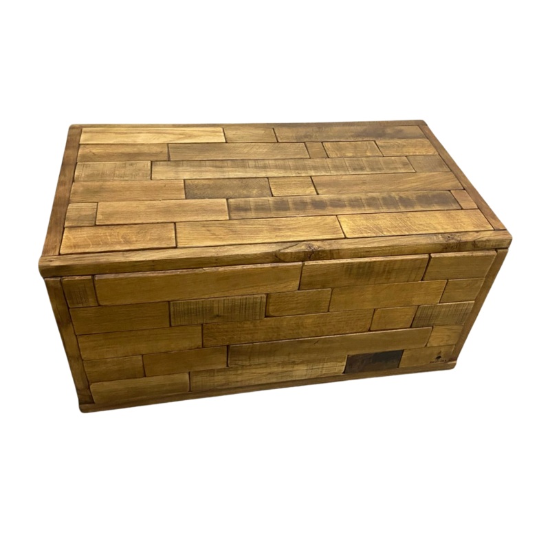 Selling: Add a touch of rustic charm to your home with our Oak Brick Effect Blanket Box. Made from beautifully crafted 'Jersey Oak', this box combines both practicality and style. Its brick effect pattern adds a unique touch to any room, while its oak cons