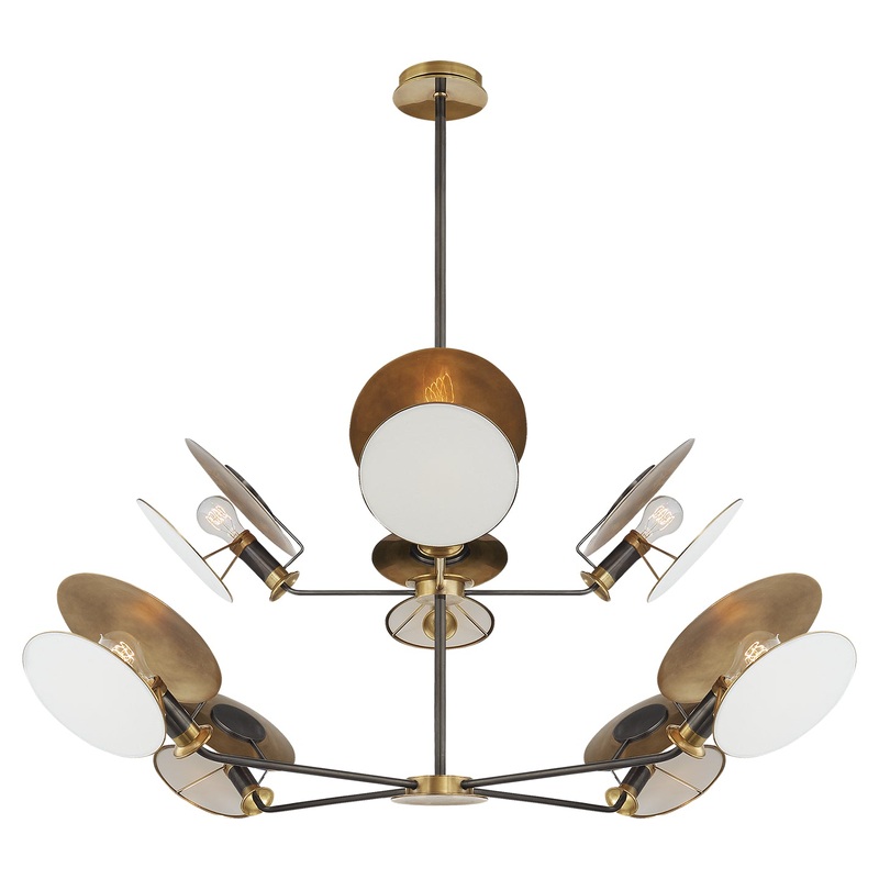 Osiris Large Reflector Chandelier in Bronze and Hand-Rubbed Antique Brass with Linen DiffuserWidth: 54.00"Height: 21.50"Weight: 32.00 lbBulbs: 8 x 40.00W E26 E26