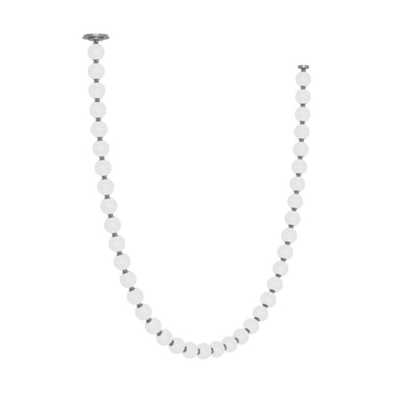 The Perle by Sean Lavin is a stunning extension to the popular Collier Series, now offered in soft white glass to provide a different design presence in a room. Available in multiple-length strands for the ultimate customization. Perle can be hung straight