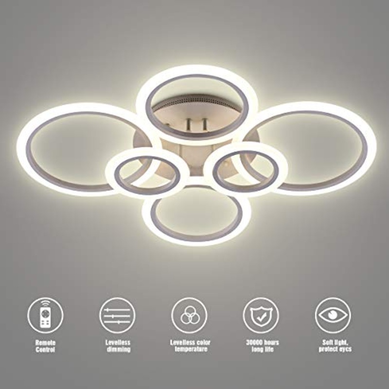 Plafoniera a LED, 6 anelli 72W Lampadario Dimmerabile Lampada dal design creativo in acrilico Illuminazione a soffitto Lampada da soffitto moderna per camera da letto Soggiorno Studio in ufficio