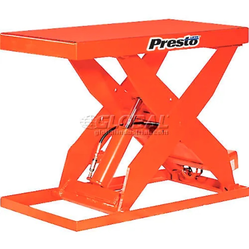 PrestoLifts HEAVY DUTY SCISSOR LIFT TABLE WITH HAND CONTROLIdeal for handling bulky heavy materials. Maximize worker and machine productivity by hydraulically positioning work at just the right level. Raise or lower to feed or accumulate from machines or c