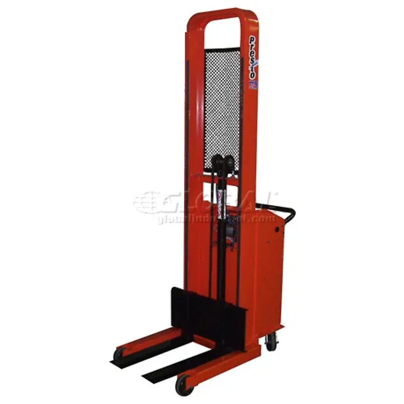 PrestoLifts Pacemaker BATTERY OPERATED HYDRAULIC STACKER LIFT TRUCKGeneral purpose power Lift Stacker makes quick work of a variety of moving and lifting jobs. Ideal for handling skids, bales, positioning work, loading trucks and stocking shelves. Ruggedly