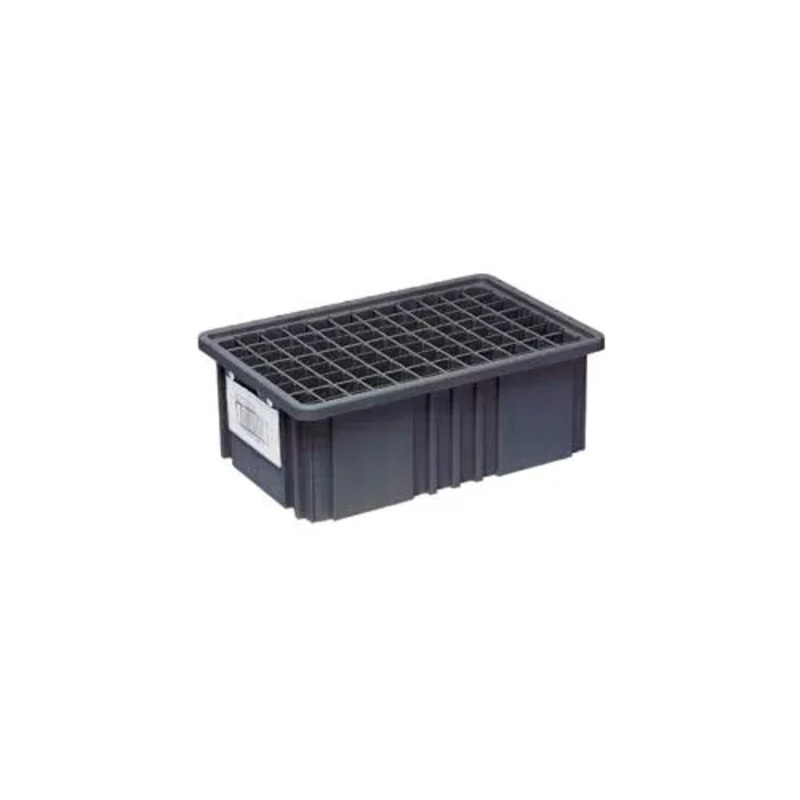 Multi-ribbed external sides provide high impact strength to these injection molded carbon filled copolymer polyethylene grid boxes. Conductive grid boxes protect sensitive electronic components from typical electromagnetic interference. Electrostatic Decay Rate is tested to meet Mil Spec Mil-B-81075B at less than 0.1 seconds. Surface resistivity is less than 105Ohms/Sq when tested per ASTM-D257.
