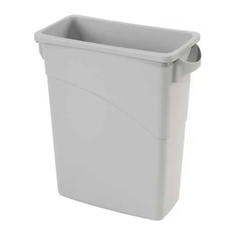 This recycling container space saving profile fits virtually anywhere. Rubbermaid Slim Jim container features venting channels that make removing liners up to 80% easier, improving productivity and reducing the risk of worker injury. Includes bag cinches to secure liners around the rim of the container and allow for quick, knot-free liner changes. Base and rim handles improve grip and control while lifting and emptying full containers. Long lasting durable plastic construction resists dents, cracks and corrosion. Lids sold separately.