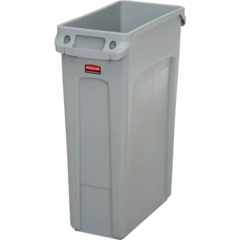 This 23 gallon recycling container's shape makes efficient use of limited space. Space saving profile fits virtually anywhere. Rubbermaid Slim Jim container features venting channels that make removing liners up to 80% easier, improving productivity and re