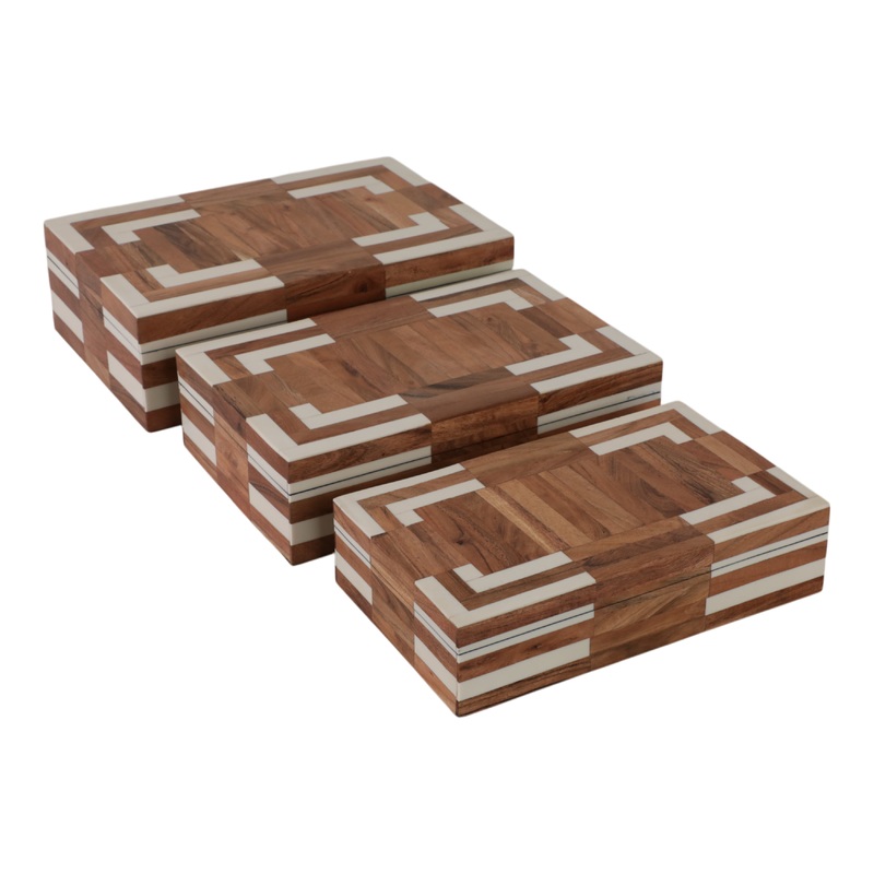 S/3 10/11/12 Wood Inlay Boxes, Natural/ivory