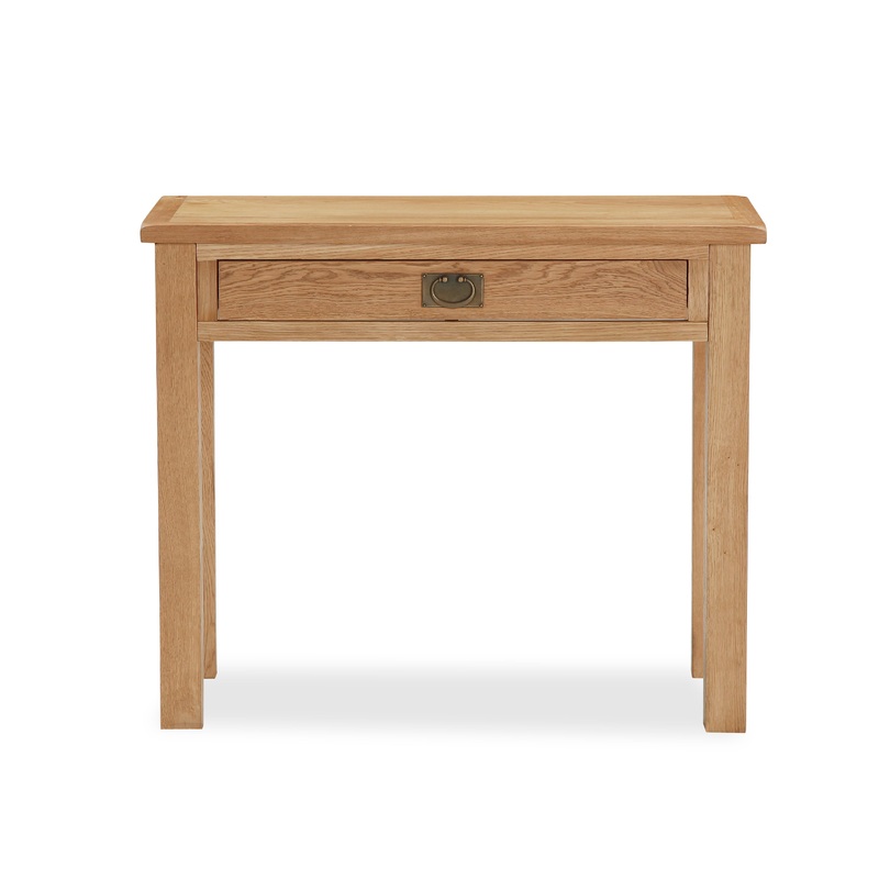 The Saltsburg Lite Laptop Desk is part of a compact oak furniture collection, perfect for small homes. With a warm waxed oak finish and classic dovetail drawer boxes, it offers both style and functionality. Furnish your compact living space with ease and f