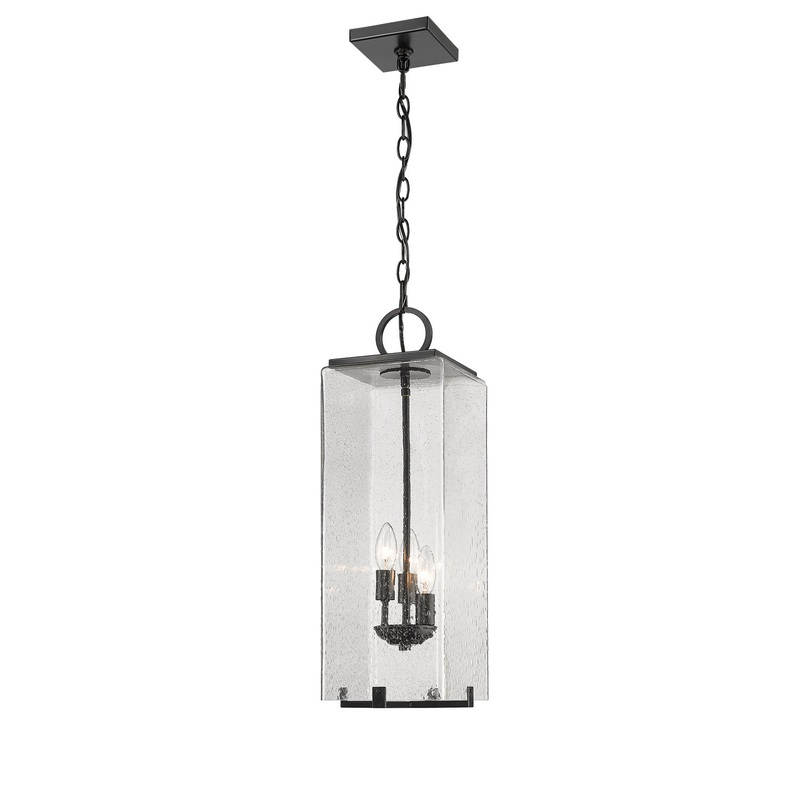This black three-light outdoor chain mount ceiling fixture flaunts a coastal-inspired look with a steel chain, making it the perfect piece for your outdoor living area. The seeded glass shade provides a touch of texture while topped with a decorative O-ring.