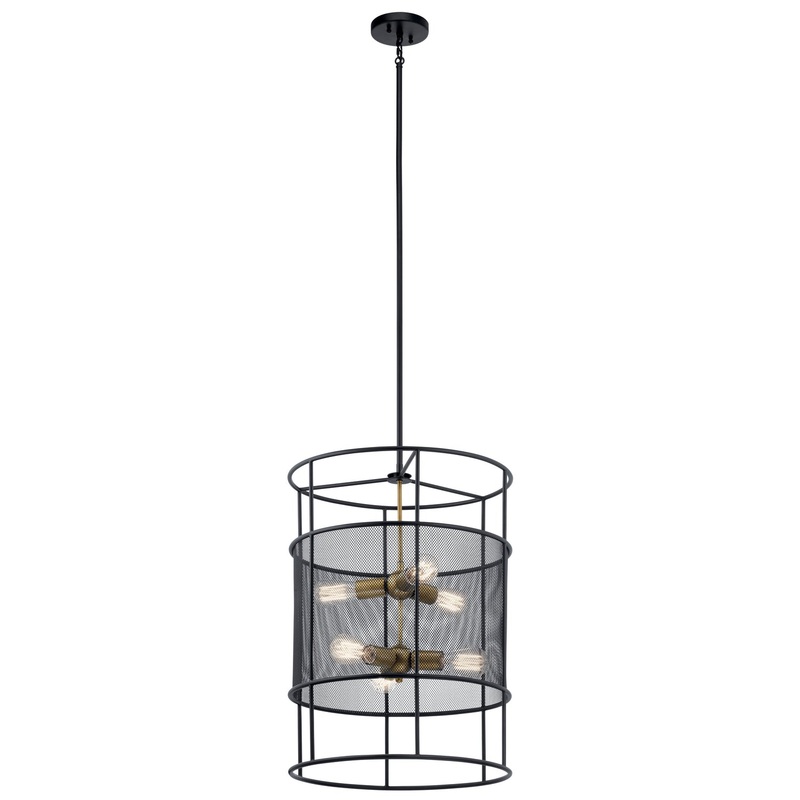 Specifications for this Kichler Six Light Foyer PendantTwo on-trend finishes deliver sleek industrial-era style on this Piston foyer pendant. Natural Brass accents add the shine, while a black mesh cage forms the structure.Width: 18.00"Height: 25.00"Weight