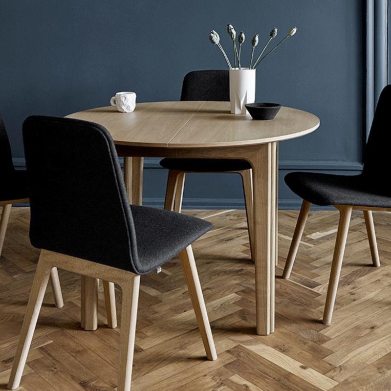 A Skovby 111 egy kerek tkezasztal 105 cm tmrvel, amely 145 cm hosszra bvthet egy bell elrejtett sszecsukhat lap segtsgvel, gy 6 f is knyelmesen elfr az asztal krl. A dizjn nagyon letisztult, s minimalista ami knnyedebb megjelenst klcsnz az asztalnak. Vltoz
