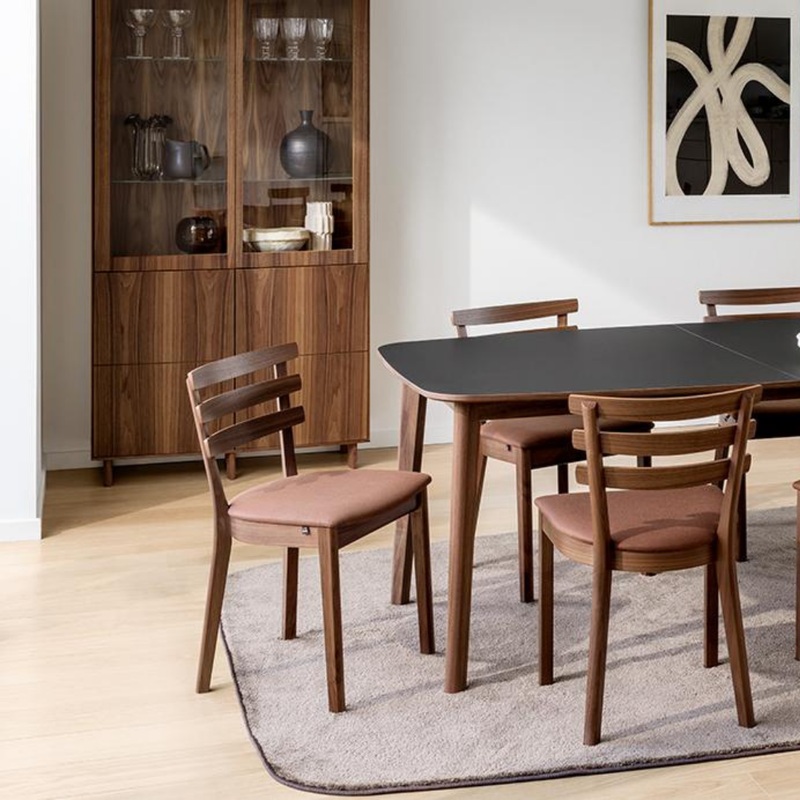 A Skovby 410 kabinet a Curve sorozatunk rsze. Ez egy hagyomnyos vitrin, fels rszn vegajtkkal, als rszn pedig furnrozott ajtkkal kszlt. Az eleje enyhn velt, finom formj, ami sszessgben egyszersget s elegancit klcsnz a szekrnynek. A szekrny hat karcs, trapz alak, tmr fa lbon ll, ami nagy stabilitst s knnyed megjelenst biztost. rdekes rszlet a ngy kisebb ellap illzija az als rszben, amelyek valjban kt ellap, finom faragott vonallal tszelve. Ez tovbb fokozza a megjelenst, s kiemeli a kzmvessget s a termszetes anyagokat.